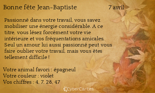 Carte Bonne Fete Jean Baptiste 7 Avril