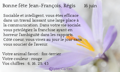 Carte Bonne Fete Jean Francois Regis 16 Juin