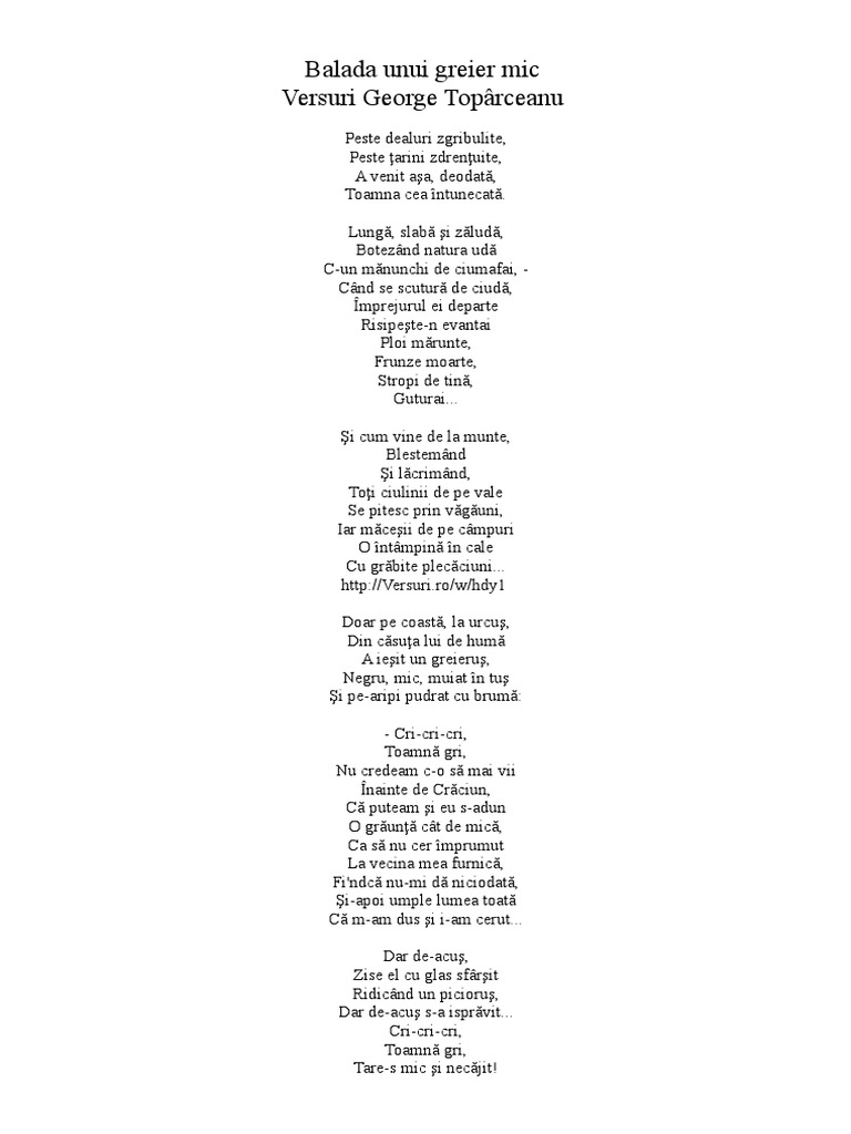 Poezia Balada Unui Greier Mic De George Toparceanu Masacrata