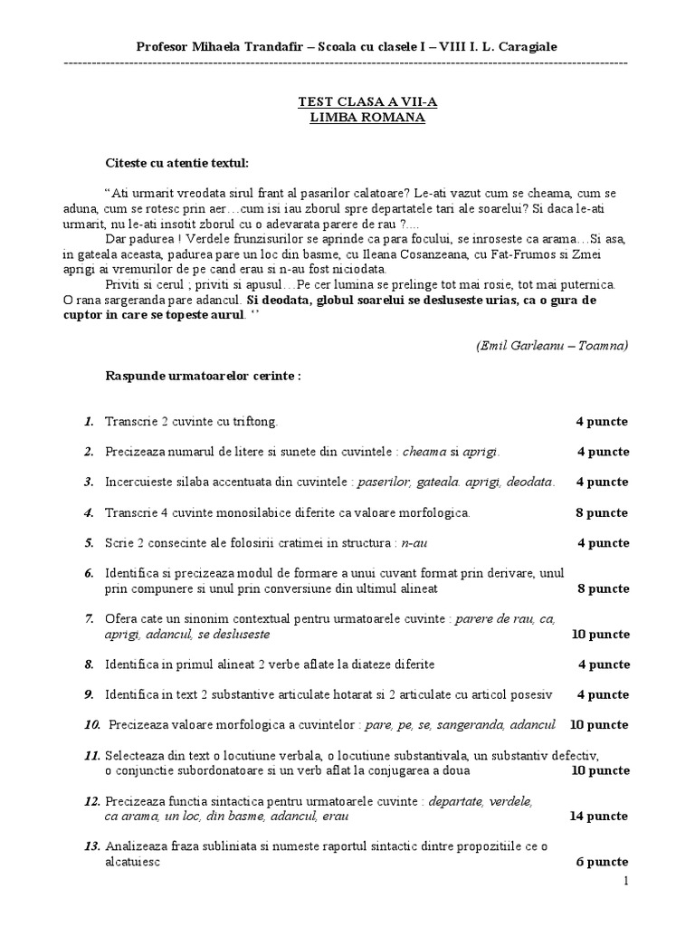 Test Clasa A Vii 30 11