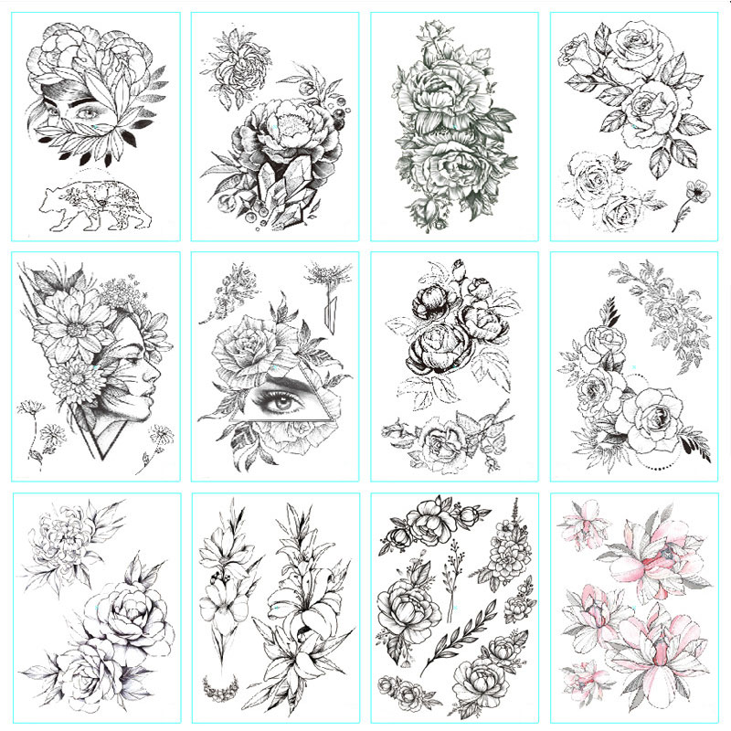 Distribuidores De Descuento Black White Flower Tattoo Black