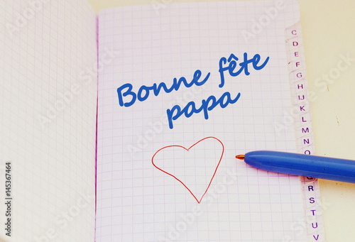 Bonne Fete Papa Phrase Sur Papier Carnet Et Coeur Et Crayon Buy