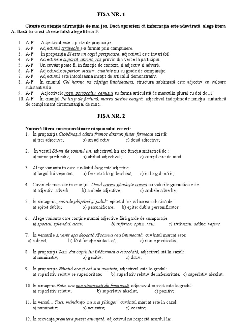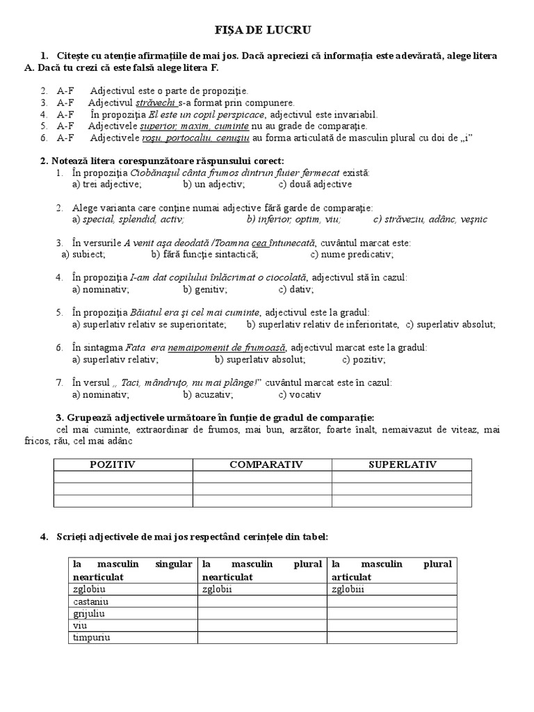 Fise De Lucru Adjectivul A 6a