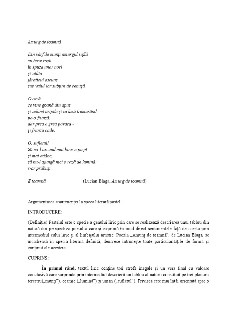 Demostrati Ca Toamna De Octavian Goga Este Pastel Brainly Ro